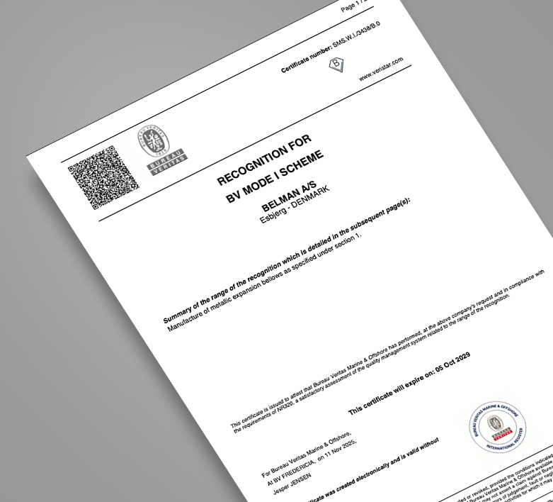 Belman Design is ISO 9001 certified, and the Belman Group holds an extensive list of certifications, including membership in EJMA (Expansion Joint Manufacturers Association). These certifications and the EJMA membership ensure clients consistently high quality across all processes. Furthermore, Belman Groups’s involvement in developing the latest EJMA standard reflects the Belman Group’s deep expertise in Expansion Joints, piping systems, and effective movement accommodation, offering clients a highly qualified and knowledgeable service provider.
